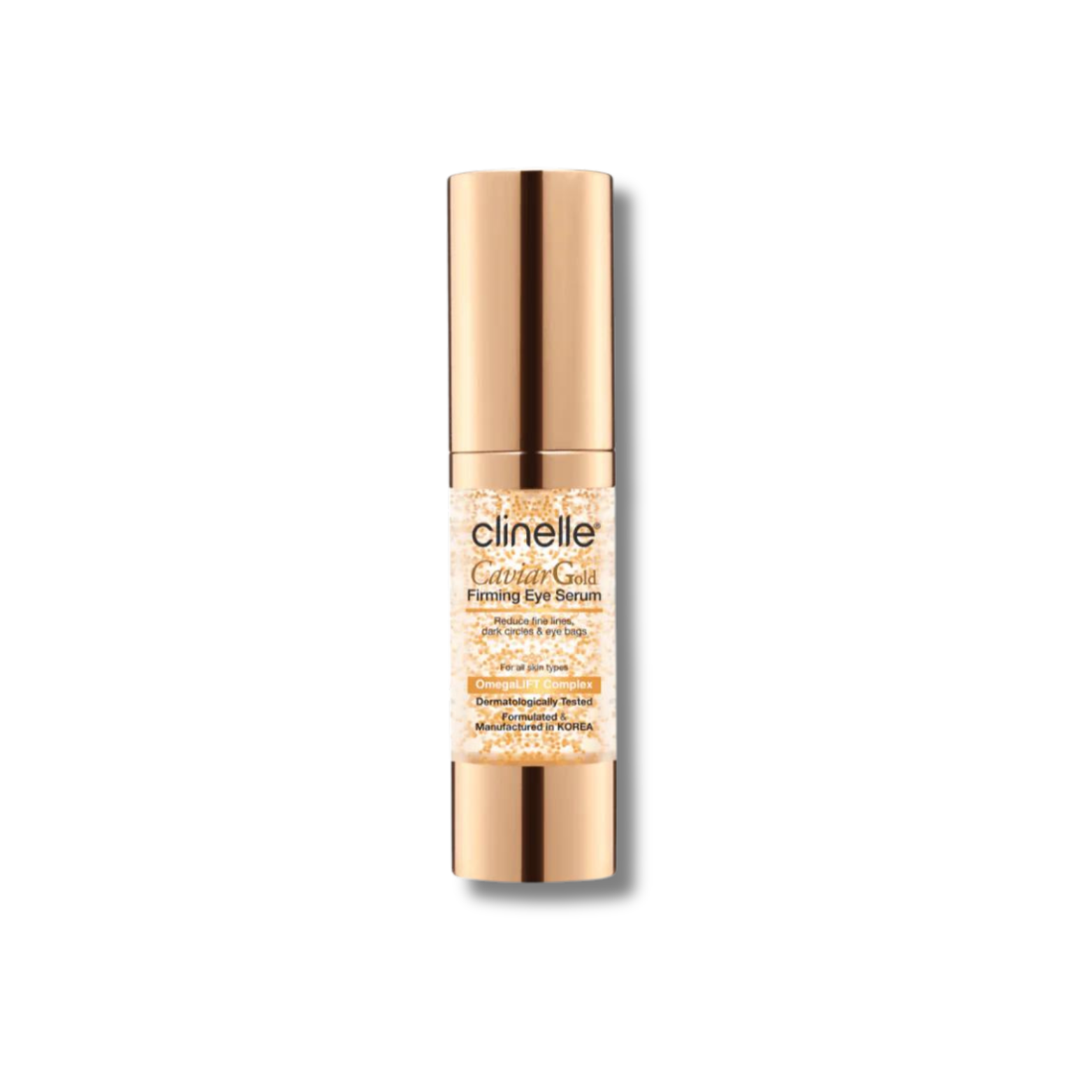 質地輕盈的眼部精華。全新升級配方加入 OmegaLIFT 複合物、魚子萃取、24K 黃金及植物萃取,能有效拉提及緊緻眼部肌膚、減淡細紋及皺紋、淡化黑眼圈、改善眼部浮腫及眼袋問題,並有效滋潤眼周肌膚。